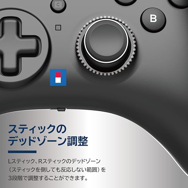 Lスティック、Rスティックのデッドゾーン(スティックを倒しても反応しない範囲)を3段階で調整することができます。
