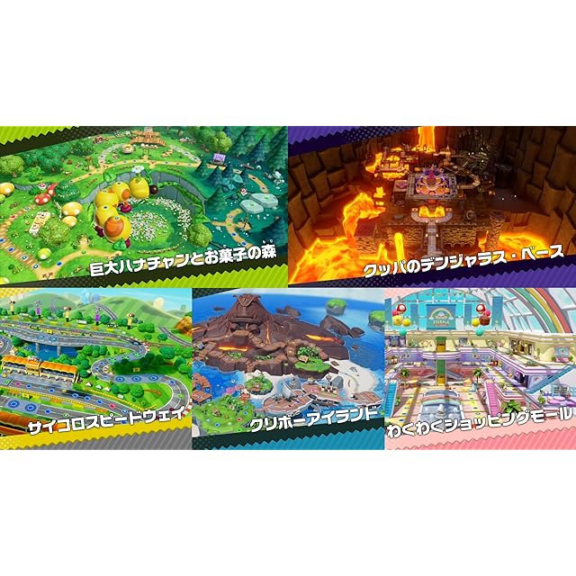 スゴロクは、5つの新作ボードと2つのリメイクボードを収録。最大4人で遊べるスゴロクは、オンラインで友達と遊ぶことができるのはもちろん、1人でもランダムマッチで世界中の人と楽しめます。ミニゲームは、シリーズ最多の110種類以上を収録。アクションやレース、瞬間的なひらめきが大切なパズルなどのさまざまな新作ミニゲームや、Joy-Conを振ったり、傾けたり、体をつかったミニゲームも。
