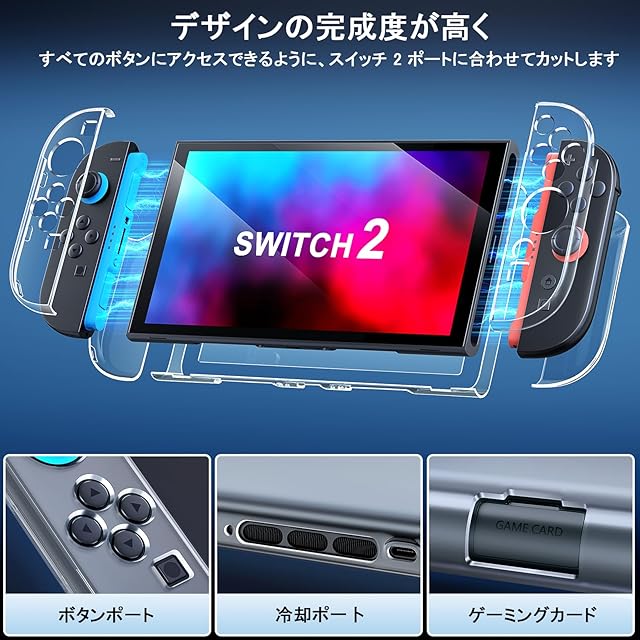 【高透明PC素材、360°全方位保護】 分体式設計 PCカバー、高透明度の高品質PC素材を採用、長時間使用後も輝きと透明感を維持し! 本ケースは簡単に取り付け・取り外しができる設計となっており、Switch 2本体を傷つけることなく迅速に交換可能です。