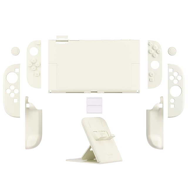 PlayVital Nintendo Switch 2(2025)対応ハードカバー 保護ケース 付けたままドックに対応 折りたたみ式スタンド&親指グリップ付き–【アイボリー】
