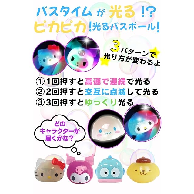 商品名:キャラクター サンリオ バスボール ランダム 5点セット (光る3点,期間限定2点) シュワたま 詰め合わせ 光る 入浴剤 子供 男の子 女の子 セット プレゼント 福袋 光る 期間限定 限定シリーズ