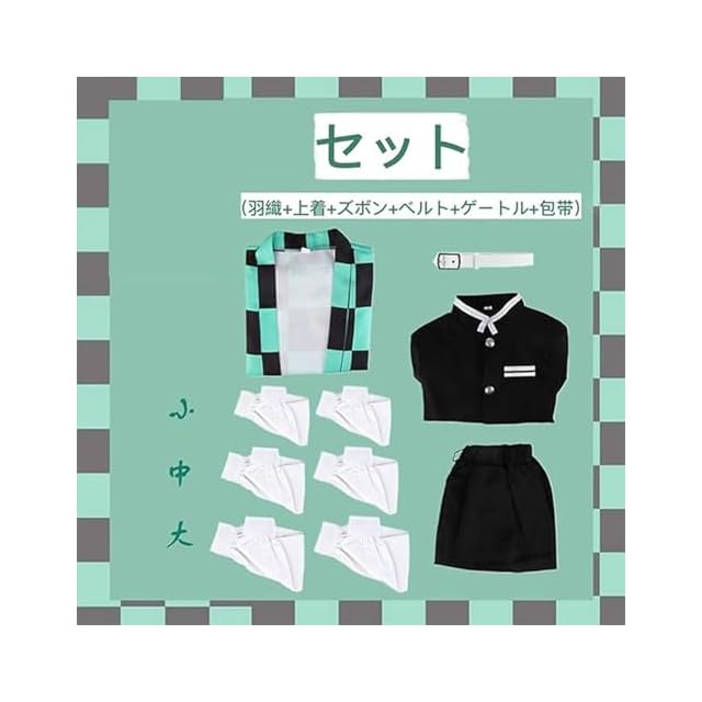 竈門 炭治郎 かまどたんじろう:羽織、上着、ズボン、ベルト、、足カバー (巻物包帯)