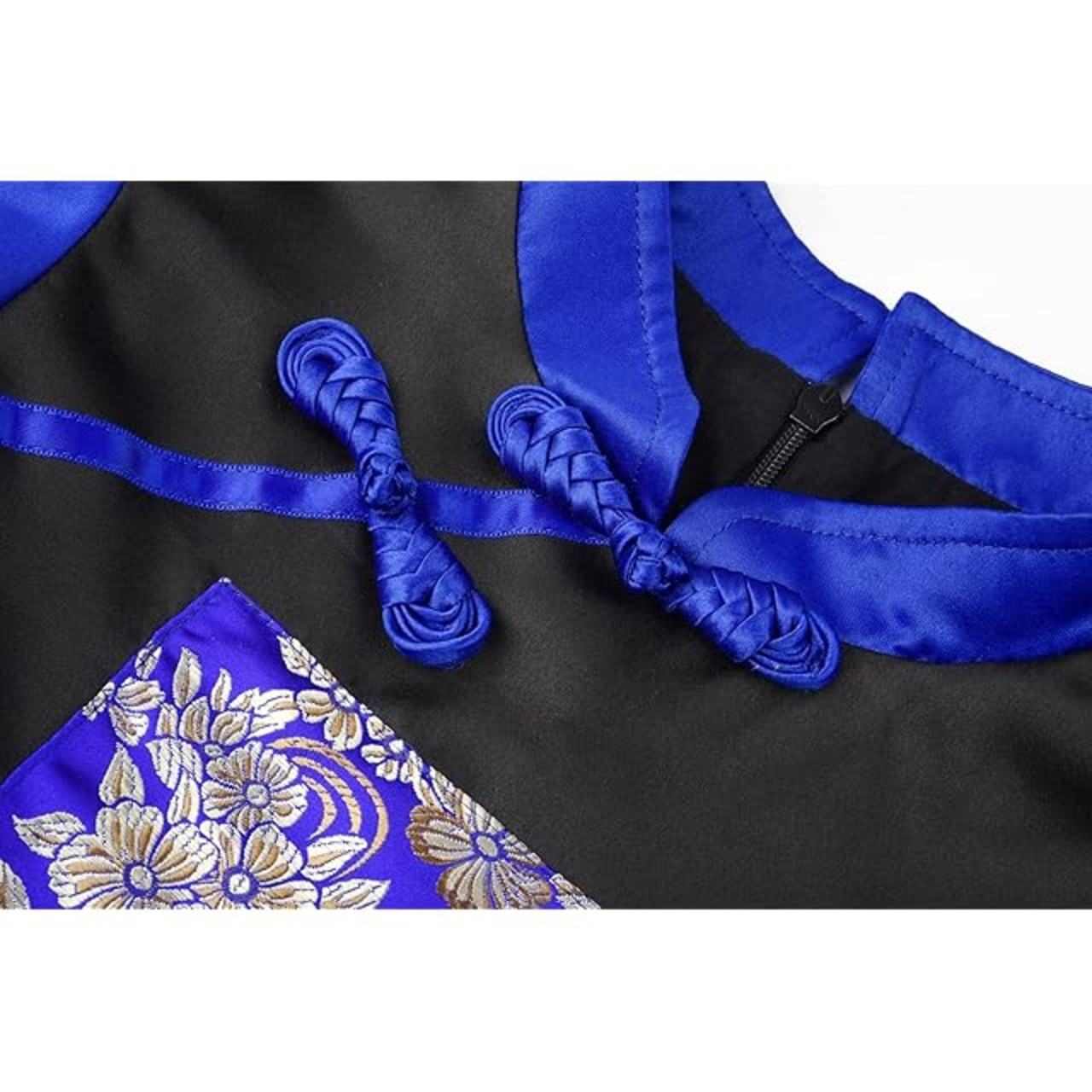 高級感が出るツヤツヤとした光沢のあるサテン素材を使用、胸元にチャイナ生地が装飾され、首元の飾りボタンとプリンセスドレスのようにふんわりお袖が可愛い、チャイナ風ワンピースです。