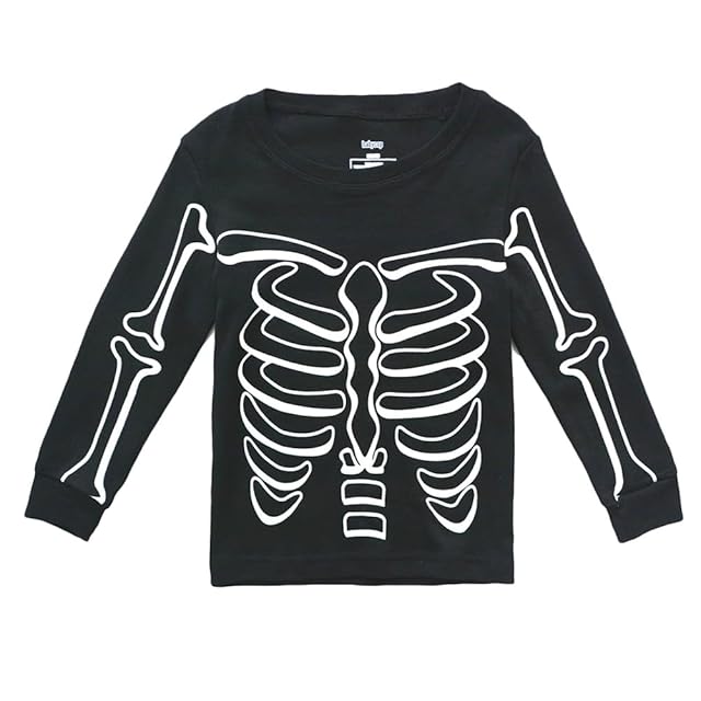 [HahaNice] 子供服 光るパジャマ 男の子 長袖 キッズ ハロウィン 仮装 コスプレ パーティー 女の子 tシャツ+長ズボン上下2点 ボーイズ 春秋冬 カッコイイ 人気 骨柄 100