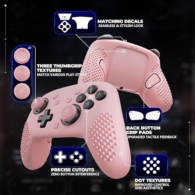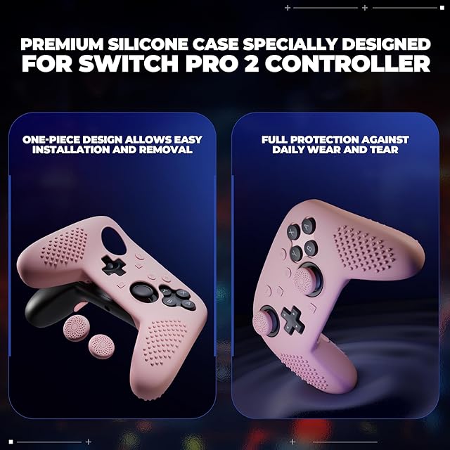 PlayVital Switch2 Pro対応 シリコン製グリップカバー 3D立体加工 滑り止め仕様 背面ボタン&サムスティックキャップ&ステッカー付属【ピンク】