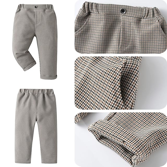 [Sivrusn] 子供 スーツ 男の子 フォーマルスーツ キッズ 紳士服 千鳥格子柄 4点セット ボーイズ フォーマルウェア キッズコスチューム 子供服 お宮参り 卒業式 入学式 卒園式 入園式 発表会 結婚式 七五三 誕生日 プレゼント brown 140cm