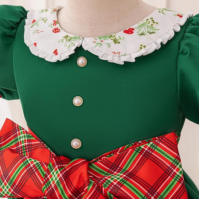 [SUBTRY] クリスマス コスプレ 女の子 子供ドレス 4点セット ドレス カチューシャ 飾り メガネ クリスマス サンタ 雪だるま 鹿 可愛い コスチューム キッズ パーティー 仮装 演出服 姫 キッズドレス(セット097.グリーン,150cm/8Y)