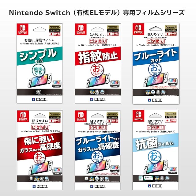 ホリ技術「ピタ貼り」による貼りやすさが自慢です。画面サイズが大きいNintendo Switch(有機ELモデル)でも、位置ズレや気泡の入りが起きにくい構造になっています。