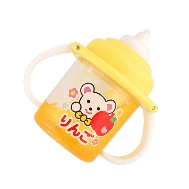 ベビーマグを傾けると中のりんごジュースがなくなり、飲んだように見える。
