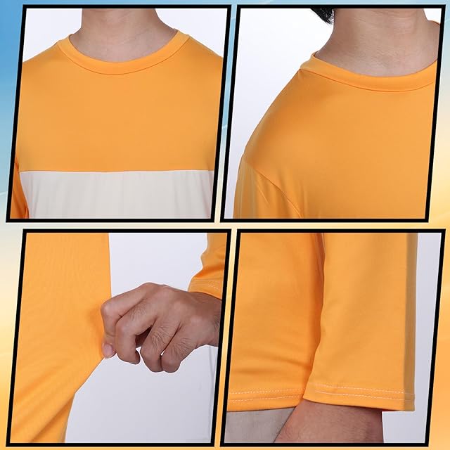 [Formemory] コスプレ 服 イエロー Tシャツ おしゃれ のびた え-もん 黄色服装 ブルータイツマン 泣き虫少年 アニメ コスチューム 黄色Tシャツ プレゼント 制服 風 コスチューム 男女 兼用 大人 長袖 ネイビーのショートパンツ 眼鏡 (オレンジ少年, XL)