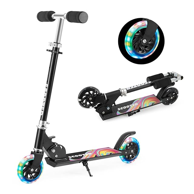 Tenboom キックボード キックスクーター 子供用 LEDタイヤ スタンド付き キッズ スケーター 折り畳み式 持ち運び便利 収納易い 高さ調整可能 男の子 女の子 誕生日/クリスマス/新年/入学お祝い ギフトに最適 黒色