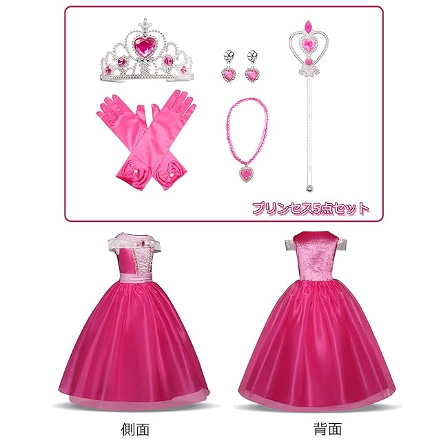 【豪華6点セット】プリンセスドレス、ハートのティアラ、魔法のステッキ 、手袋、ネックレス、イヤリング