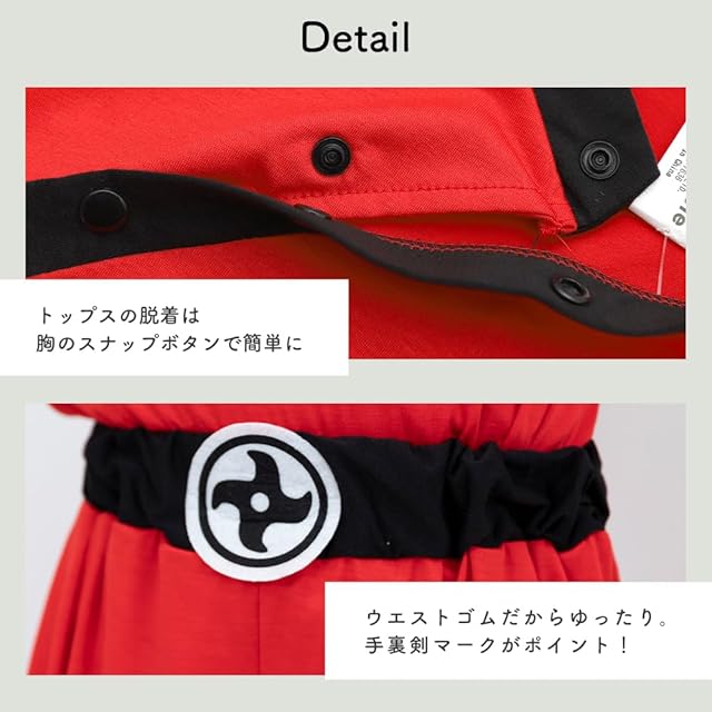 着るだけで簡単に大変身!思わずテンションが上がってしまう忍者の衣装です。難しい着付けなど一切不要。お洋服と同じように着てはちまきを締めたら完成 柔らかい素材なので動きやすく、思いっきり忍者ごっこを楽しめます。ハロウィンパーティーやテーマパークへのお出かけ、お遊戯会、文化祭、記念日、写真撮影などに使えます!
