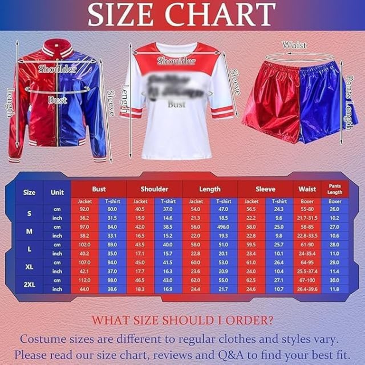 【セット内容】コート + パンツ + Tシャツ +ストッキング+ 手袋 + 首輪 + インフレータブル野球 + かつら + タトゥーシール、豪華9点セット。本製品は、映画の人気キャラクター「ハーレイ・クイン」のコスプレ衣装です。 映画に登場する衣装のディテールをできる限り忠実に再現します。