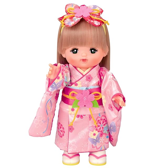 とってもかわいいふりそででおめかししたおかっぱヘアのメルちゃんお人形つきセットです。