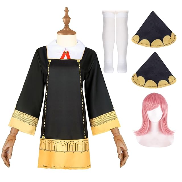 [§y∞yoiyasu] アーニャ コスプレ ハロウィン 子供用 仮装 キッズコスチューム ワンピース ウイッグ付き 5点セット 衣装 子供コスプレ パーティー クリスマス 仮装大会 学園祭 イベント (120cm, 子供用)
