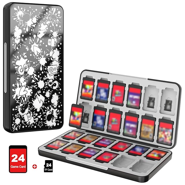 ATiC Switch 2/ 1/ Lite/ 有機ELモデル ソフトケース カード収納ケース ソフト24枚/Micro SD 24枚同時に収納 耐衝撃 軽量 防塵 持ち運び便利 スプラ3柄 Black&White