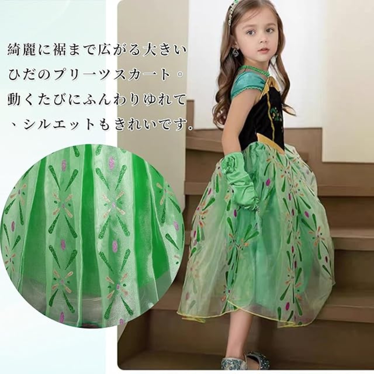 商品名:[AOTYP] プリンセスドレス 子供 コスプレ お姫様 ドレス 女の子 ワンピース 子供用 プリンセス 仮装 コスプレ ワンピース ガールズ 姫風 キッズコスチューム 子供 女の子 記念撮影用 変身 ステージ衣装 クリスマス プレゼント cosplay イベント 仮装 誕生日 グリーン100
