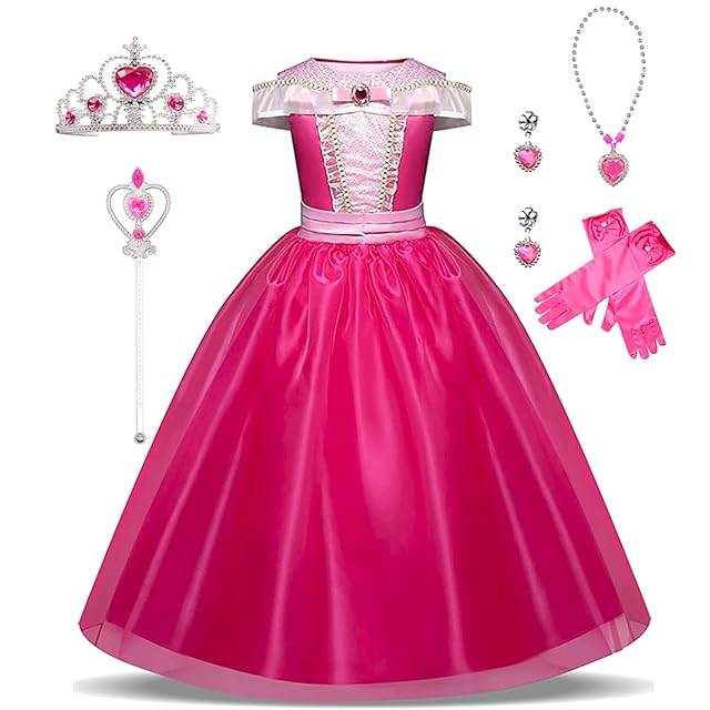 [AOTYP] プリンセス ドレス オーロラ姫 ドレス 子供 コスプレ 豪華6点セット お姫様 ドレス 女の子 ワンピース 姫風 キッズコスチューム ディズニー姫風ドレス 子供 女の子 記念撮影用 変身 ステージ衣装 クリスマス プレゼント cosplay イベント 仮装 誕生日 レッド140