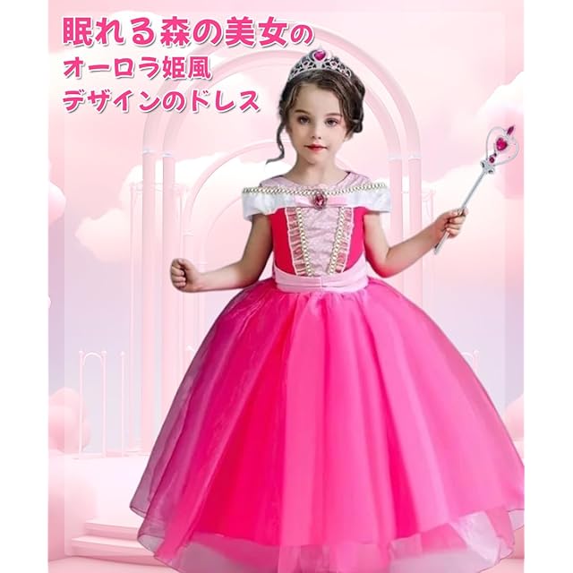 商品名:[AOTYP] プリンセス ドレス オーロラ姫 ドレス 子供 コスプレ 豪華6点セット お姫様 ドレス 女の子 ワンピース 姫風 キッズコスチューム ディズニー姫風ドレス 子供 女の子 記念撮影用 変身 ステージ衣装 クリスマス プレゼント cosplay イベント 仮装 誕生日 レッド150