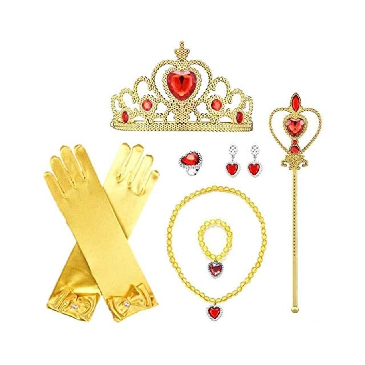 [CREDIBLE] プリンセス ドレス 子供 コスプレ 衣装 豪華10点セット ・ イエロー (プリンセスドレス, リボン付グローブ, ハートのティアラ, 魔法のステッキ, ネックレス, イヤリング, 指輪, ブレスレット, お花のブローチ, オリジナルグッズ) 130cm TT5233