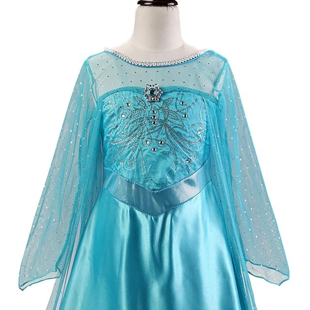 商品名:[YITING] 子供 用 プリンセス ドレス 子供 コスプレ 衣装 豪華7点セット ・アイスブルー (プリンセスドレス, ハートのティアラ, 魔法のステッキ, 手袋, ネックレス, リング, イヤリング) (130)