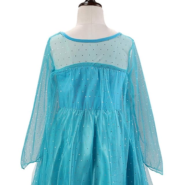 [YITING] 子供 用 プリンセス ドレス 子供 コスプレ 衣装 豪華7点セット ・アイスブルー (プリンセスドレス, ハートのティアラ, 魔法のステッキ, 手袋, ネックレス, リング, イヤリング) (130)