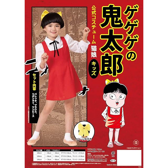 クリアストーン(Clearstone) ゲゲゲの鬼太郎 公式 コスプレ ハロウィン 猫娘 キッズ 女の子 120cm レッド