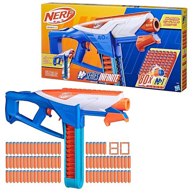 商品名:ナーフ Nシリーズ インフィニット ブラスター、Nシリーズ専用N1ダーツ80本付属、ダーツを40本装填できるバトルベルト、スポーツシューティングトイ、インドア&アウトドアゲーム、対象年齢8才以上 F8631 正規品