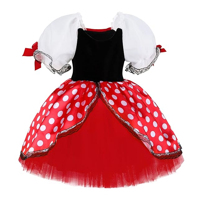 [TYHTYM] ミニー コスチューム 子供 ミニーマウス 衣装 コスプレ カチューシャ 2点セット 100-120CM ワンピース キッズ 仮装 チュチュスカート ドット柄 ミッキーちゃん クリスマス/ハロウィン/子供の日/誕生日プレゼントに最適 (110CM, レッド)