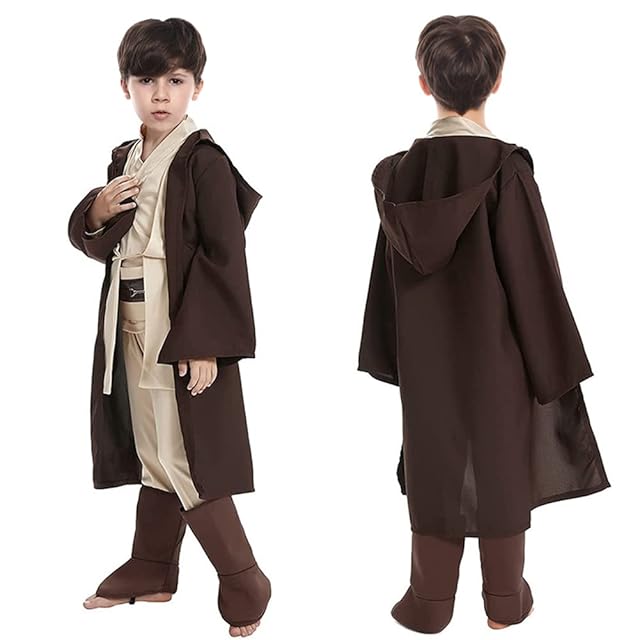 [Formemory] ハロウィン コスプレ 仮装 ジェダイ コスチューム 大人用 コスプレ 衣装 ジェダイセット 仮装 ハロウィン マント ジェダイローブ カッコいい 茶色 黒い マントセット ライトセーバー付き ネックレス付き 豪華5点セット 5つサイズ イベント変装 ハロウィン 学園祭 文化祭 演出服 (子供用 茶色マント, L)