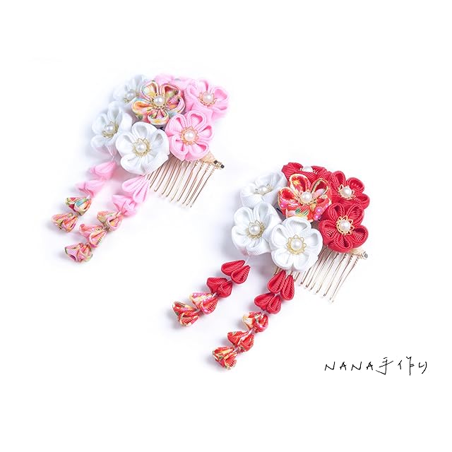 [NANA手作り]髪飾り つまみ細工 和玉 紐リボン 成人式 七五三 お祭り ヘアーアレンジ 袴 卒業式 花 入園式 三歳 七歳 3歳