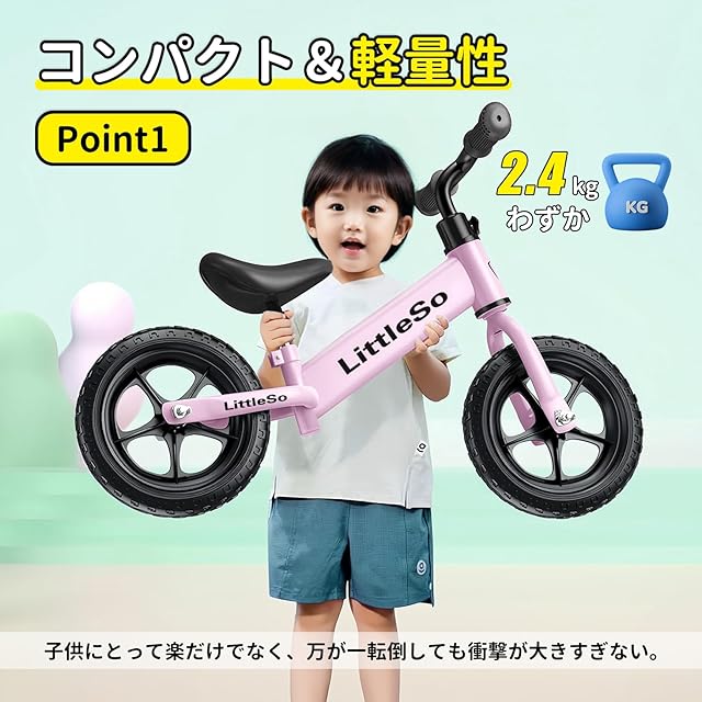 商品名:LittleSo ペダルなし自転車 3~8歳 キッズ 14インチ キックバイク スタンドあり 子供用 超軽量 持ち運びも簡単 おしゃれ 発泡タイヤ 乗り物 お祝いクリスマス 誕生日 プレゼント 子供 男の子 女の子 プレゼント 幼児 子どもの日 誕生日 (ピンク, 14インチ)
