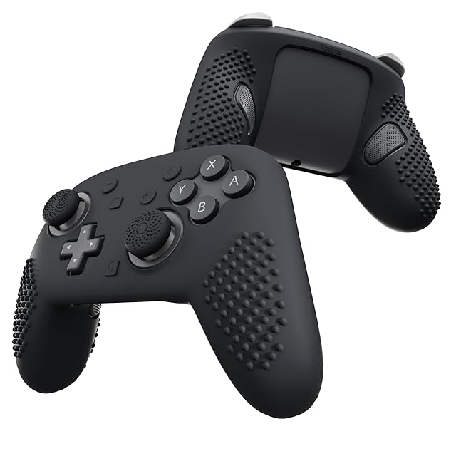 PlayVital Switch2 Pro対応 シリコン製グリップカバー 3D立体加工 滑り止め仕様 背面ボタン&サムスティックキャップ&ステッカー付属 【ブラック】
