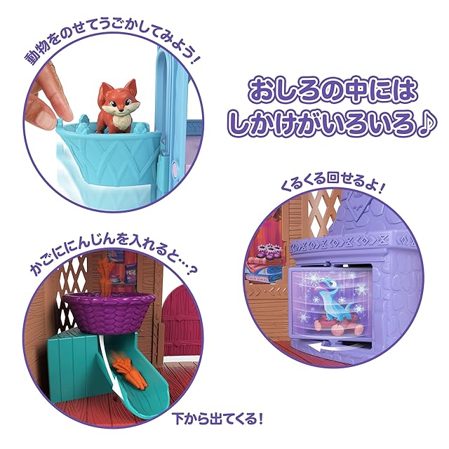 【内容】ディズニーのアニメーション映画『アナと雪の女王』をイメージしたエルサとおおきなこおりのおしろのプレイセットです。アレンデールのどうぶつたちとの暮らしをイメージしたこのセットは、おしろを開くと、動物たちに餌をあげたり、一緒に寝たり、遊んだりできる複数のエリアが現れます。3匹の動物フィギュア、そして8点のアクセサリーが含まれており、子どもたちはエルサとその仲間たちとの物語をイメージしながら遊ぶことができます。別売りのかさねるおしろシリーズを集めれば、楽しい想像がさらに広がります。 Disney