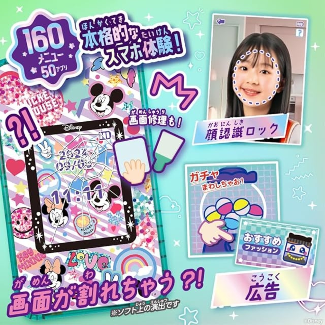 スキなだけ、スキをプラス!meスマホ+(プラス)スキをいっぱいあつめて、私だけのスマホになる!別売のダウンロードアプリカード、スマホケース、ネックストラップで私のスマホをカスタマイズ!ディズニーキャラクター:ディズニーキャラクターだけのデザイン、アプリをプリインストール。