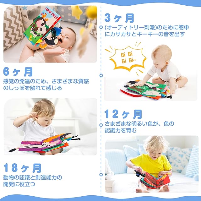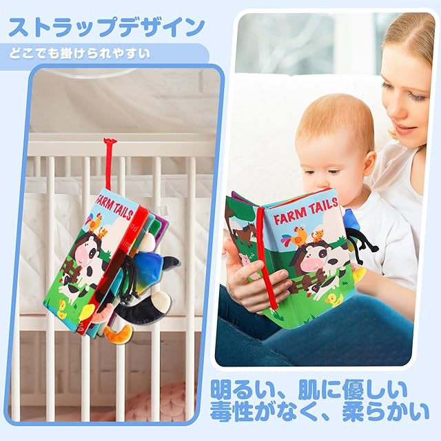 beiens 布絵本 布のおもちゃ 赤ちゃん 【ピーピーの音が出てくる】 【動物シリーズ・3Dアクティビティブック】 おでかけ布えほん 幼児 0歳から 指遊び 歯がため ベビーカー用おもちゃ 知育玩具 幼稚園 出産祝い 子供 (Farm Tails)