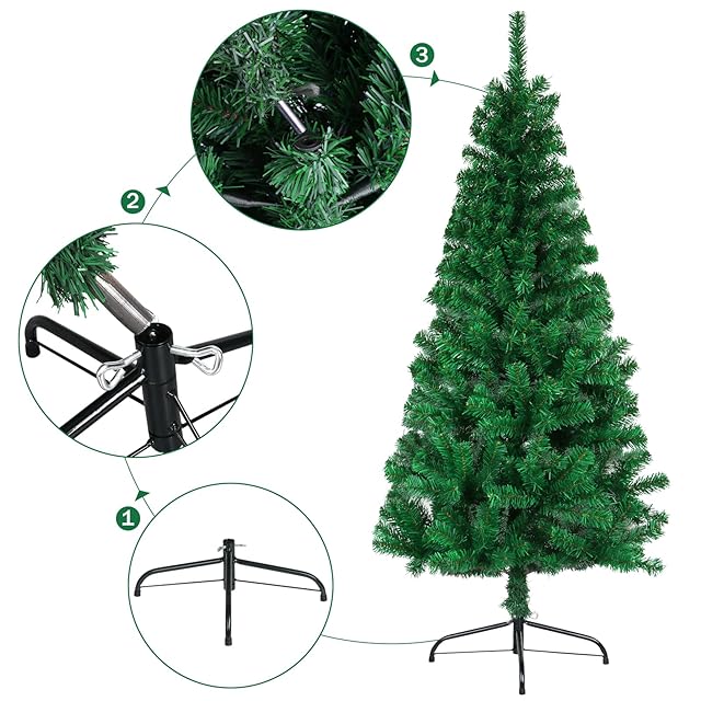 CINECE クリスマスツリー ニードツリー 高濃密度 組立簡単 説明書と保護用手袋付き (緑色 半分, 150cm)