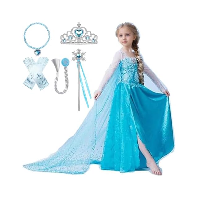 [KALAOK] ドレス プリンセス ドレス コスプレ ワンピース キッズコスチューム ガールズ ディズニー姫風ドレス 子供 仮装 诞生日 blue 100CM