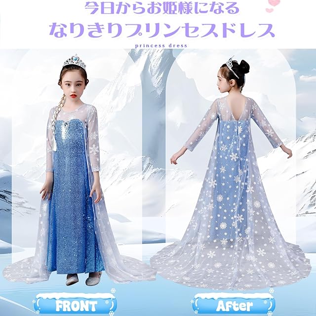女の子の可愛さを引き出し、お気に入りのドレスでお姫様になりたいお子様の夢を叶える衣装セットです。