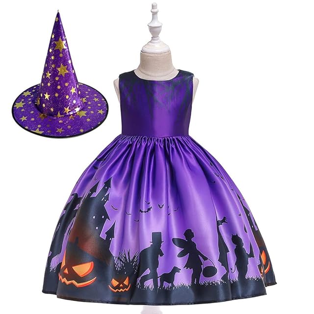 [Ymgot] ハロウィン 衣装 子供 魔女 仮装 悪魔 コスチューム ワンピース キッズ ウィッチ お化け コスプレ (パープル, 150)