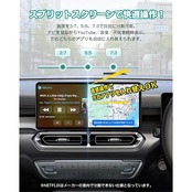 【分割画面表示で快適ドライブ】ナビと動画を同時に表示可能(5:5/7:3/3:7)。運転席ではナビ、助手席では動画を楽しめ、長距離ドライブや家族旅行に最適。