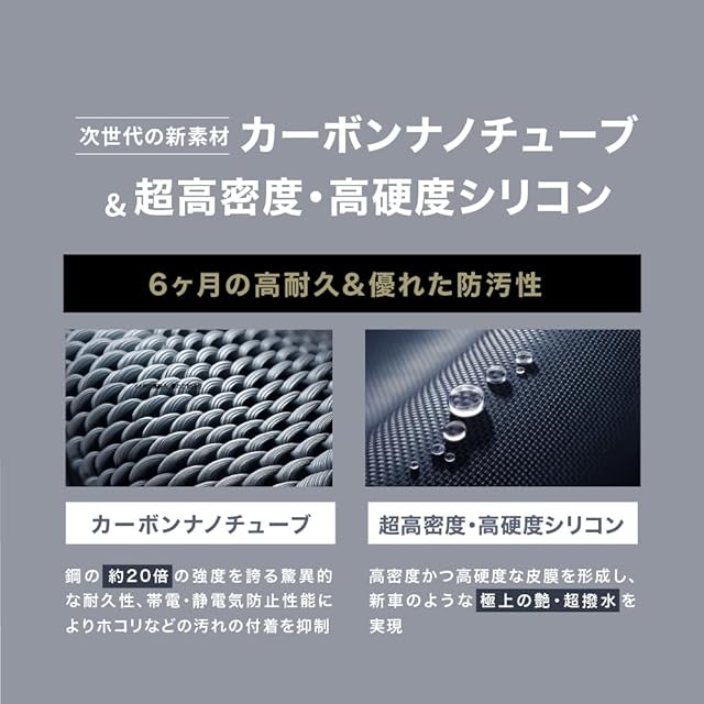 ✅【超艶・超撥水】次世代型新素材「カーボンナノチューブ」配合。さらなる『艶』『撥水』『耐久性』を実現したカーコーティング。高密度・高硬度シリコンで小キズも目立ちにくく。