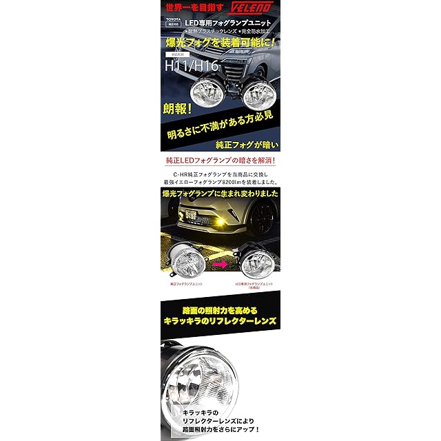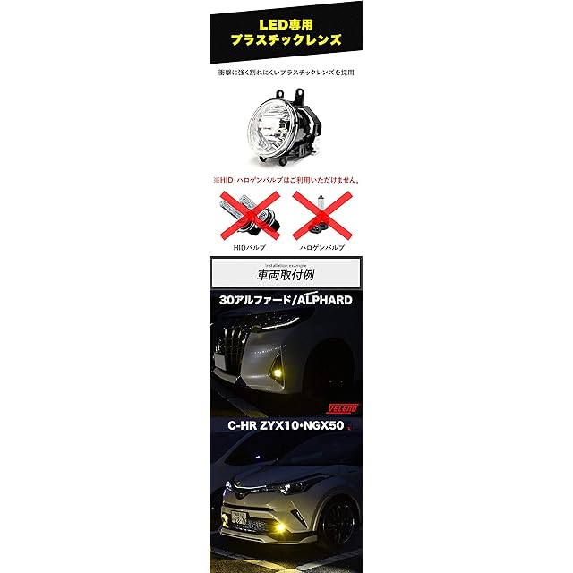 【商品名】純正交換LEDフォグランプユニットTタイプ(LEDバルブは付属されていません)【適合バルブ形状】H8/H11/H16(LED専用)【防水処理不要】当然のことながら気密性は確保されているので、シーリングなどの追加防水処理は一切不要です。【素材】特殊部隊などの盾に利用している強化ポリカーボネートを使用しているので飛び石などでも割れにくい構造です。商品性能を100%引き出すためにはVELENOのLEDバルブをご利用ください。