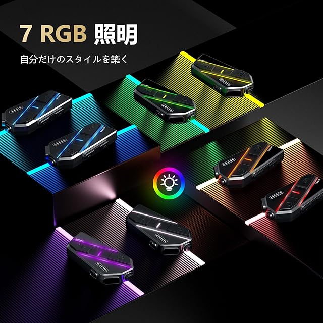 【FMラジオ ・ LEDライト機能】 GX10 PROバイク用インカム日本全国のFM放送を受信できます。ニュース、天気予報、交通情報、スポーツ中継など、さまざまな番組を楽しむことができます。一人でのライディングも退屈しません。さらに、7色のRGBライトを搭載し、色やモードを自由に切り替えることができます。夜間走行時の安全性を確保するだけでなく、夜間のツーリングで仲間と一緒に綺麗なLEDライトを点灯させながら、楽しい雰囲気を作り出すことができます。