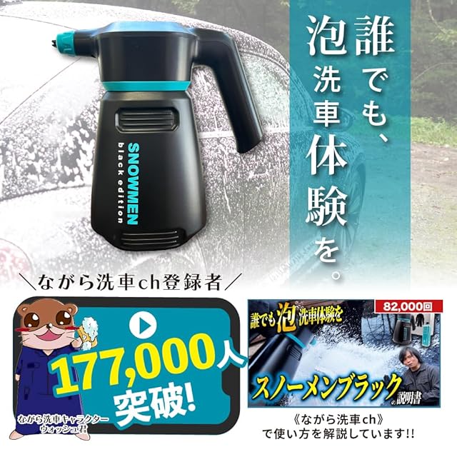 【ながら洗車】スノーメンブラック『 誰でも泡洗車体験を 』単品 電動 自動泡噴霧器 フォームガン 洗車