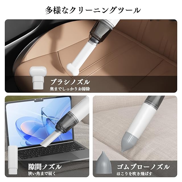商品名:Juckier ハンディクリーナー 車用掃除機 292g超軽量 車内用そうじき 13000Pa強力吸引 ブロワー&吸引機能 USB Type-C急速充電 コードレス 分離式ダストカップ 水洗い可能 コンパクト 車内/ソファ/キーボード掃除機 (ホワイト)