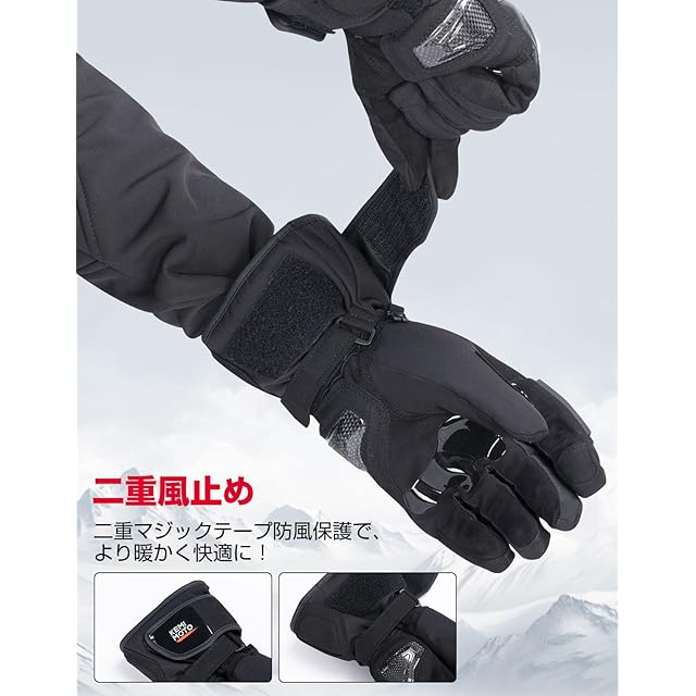 【防風|防寒】KEMIMOTOの2025年革新版バイク グローブは市販のバイク冬用グローブにより強い防風性があり、袖口の二重マジックテープ防風保護により、走行時の寒風の侵入を有効に防ぎます。なお、マジックテープは手首のサイズを調整可能で、冬用バイクグローブをよりフィットさせます。