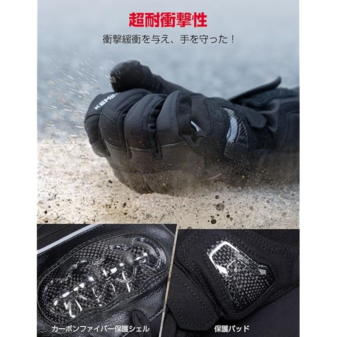 【二重風止め】KEMIMOTO バイク グローブ 冬 防水 防寒 防風 バイク手袋 ハードプロテクター 耐衝撃 スマホ対応 裏起毛 紛失防止 滑り止め オフロード グローブ 秋/冬 脱着簡単 男女兼用 ブラック XL