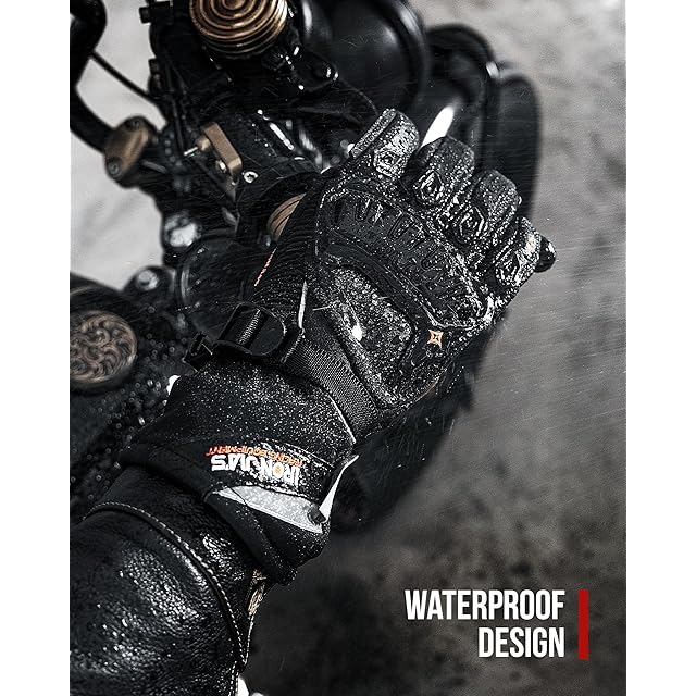 IRON JIA'S バイクグローブ 冬 防寒 オートバイ手袋 冬用 スマホ対応 防水 防風 保護手袋 裏起毛 滑り止め ブラック XXL